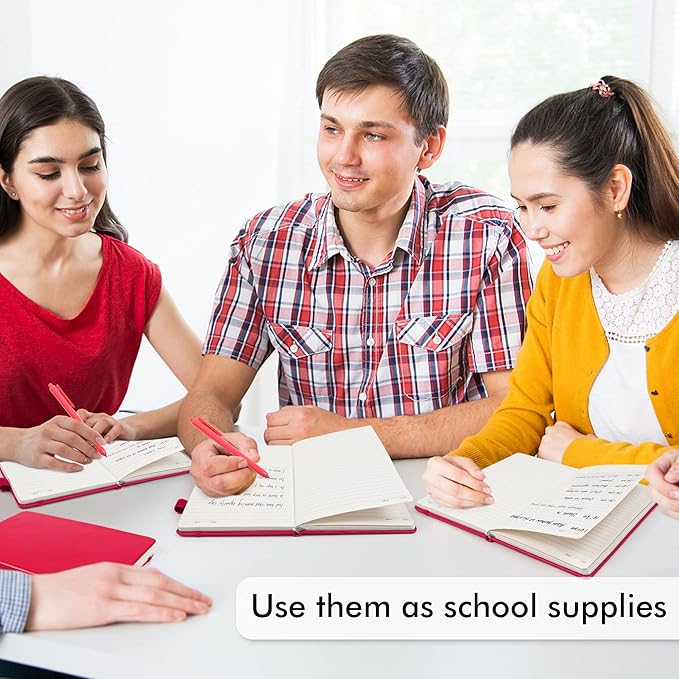 - Feela 3 Pack Classic Ruled Notebooks contains 3 classic berry ruled sturdy cover notebooks and 3 Black Retractable Pens. Each of the notebooks measures 8.3” x 5.1”, which is perfect to carry and easily held by young girls and boys. These black cute pens are customized to be placed in the pen holder, which is pretty convenient.