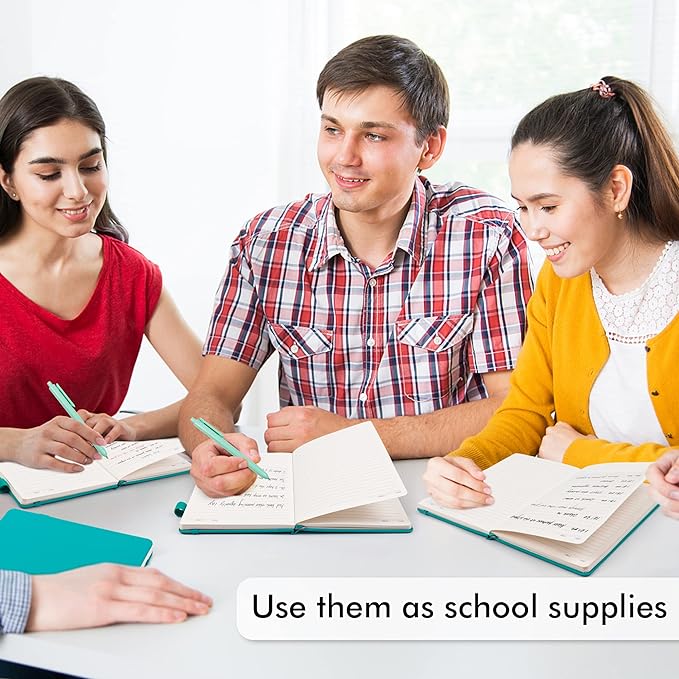 - Feela 3 Pack Classic Ruled Notebooks contains 3 classic emerald ruled sturdy cover notebooks and 3 Black Retractable Pens. Each of the notebooks measures 8.3” x 5.1”, which is perfect to carry and easily held by young girls and boys. These black cute pens are customized to be placed in the pen holder, which is pretty convenient.