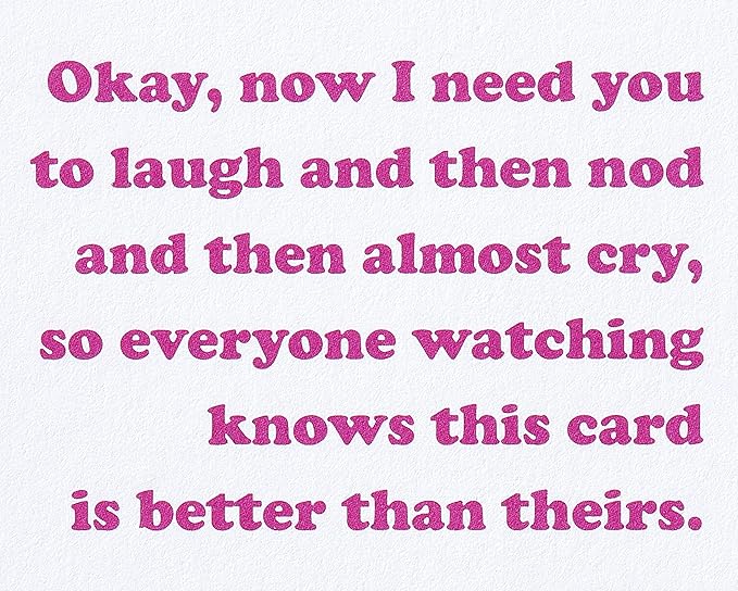 • Inside Message: Okay, now I need you to laugh and then nod and then almost cry, so everyone watching knows this card is better than theirs.