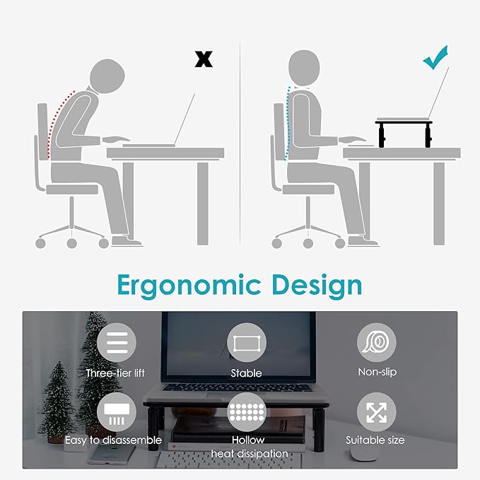 - ★ EXTREMELY STABLE & SAFE laptop stand: This monitor riser holds up to 44 lbs comes with non-slip legs & anti-skid rubber that increases stability and protects your laptop and furniture from damage. Rest assured that your device is in safe hands while you get more work done. Also this computer stand for desktop monitor could save space for your workplace.