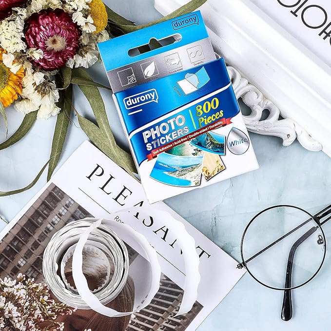 durony 800 Pieces Photo Sticker White Double-Sided Self Adhesive Photo Tapes for Pictures DIY Photo Album Journal