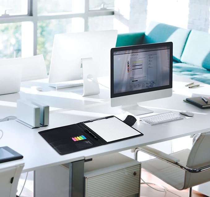 - Versatile - High-quality faux leather document folder for easy tidying up and organising in business, school, university, office, class, This padfolio binder is lightweight and compact and it is easily fits into briefcares and bags. Making it the perfect accesorry for on the go professionals.