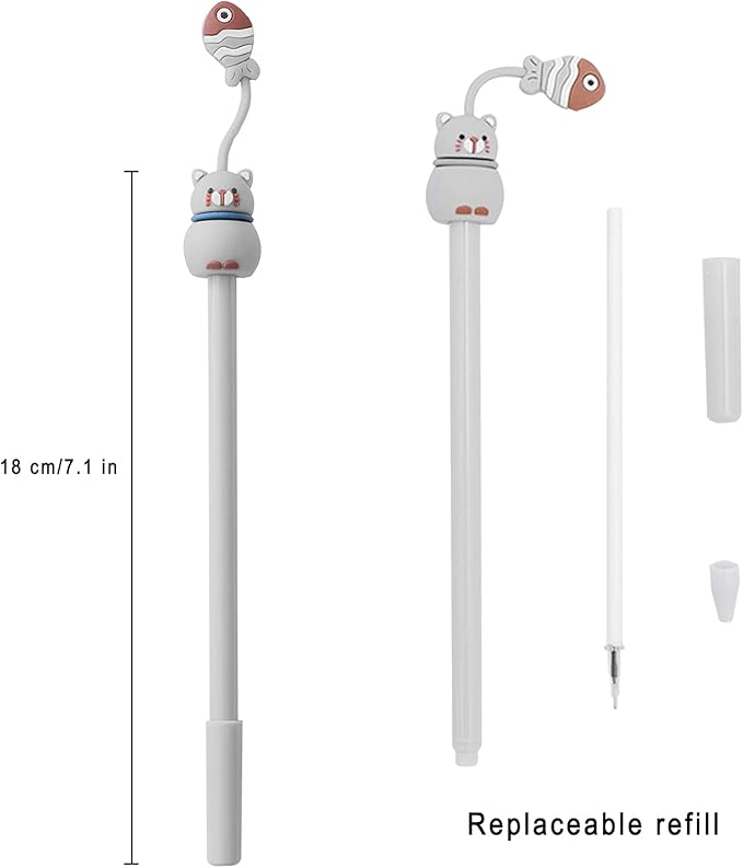- 🐱Interesting design: Theblack gel pens kawaii combines exquisite and cute animals and has different designs, including rabbit, pig, kitten.very interesting funny pens for kids uses 0.5mm refill. The ink is also black. When writing text, the handwriting written by the non-slip kawaii pens refill will be smoother and appear extraordinarily clear