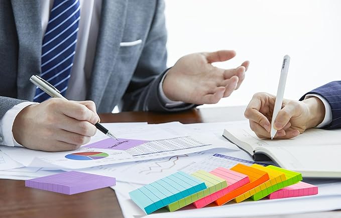 - Super Sticky Notes: Strong adhesive, make sure sticky notes don't fall off, and removes cleanly as well. Sticky note is easy to recycle.