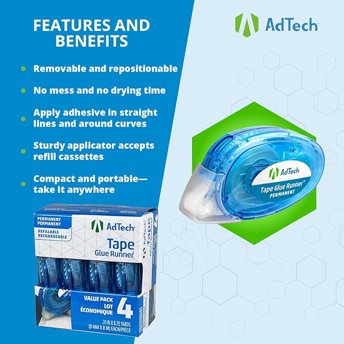 AdTech Permanent Glue Runner, 35 Yards (3-Pack) | Strong, Double-Sided Adhesive for Crafting, Scrapbooking & Office Use | Acid-Free, Reliable Bond