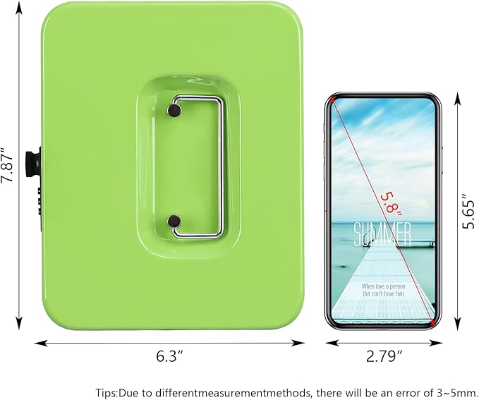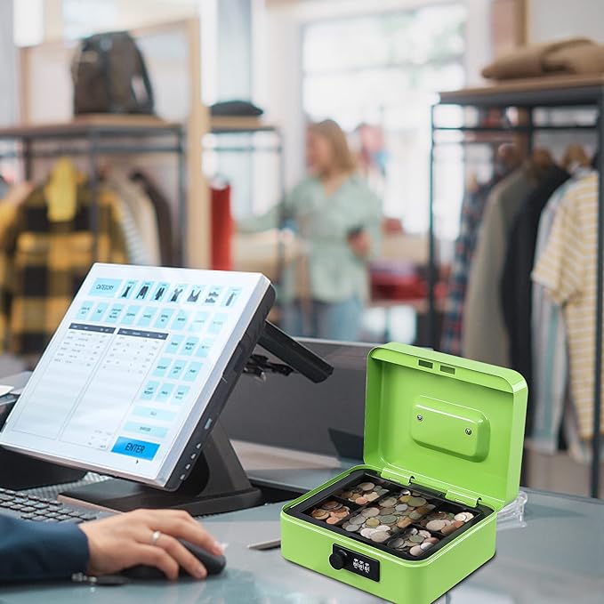 KYODOLED Cash Box with Combination Lock,Safe Metal Box for Money,Storage Lock Box with Money Tray,7.87"x 6.30"x 3.54" Limegreen Medium