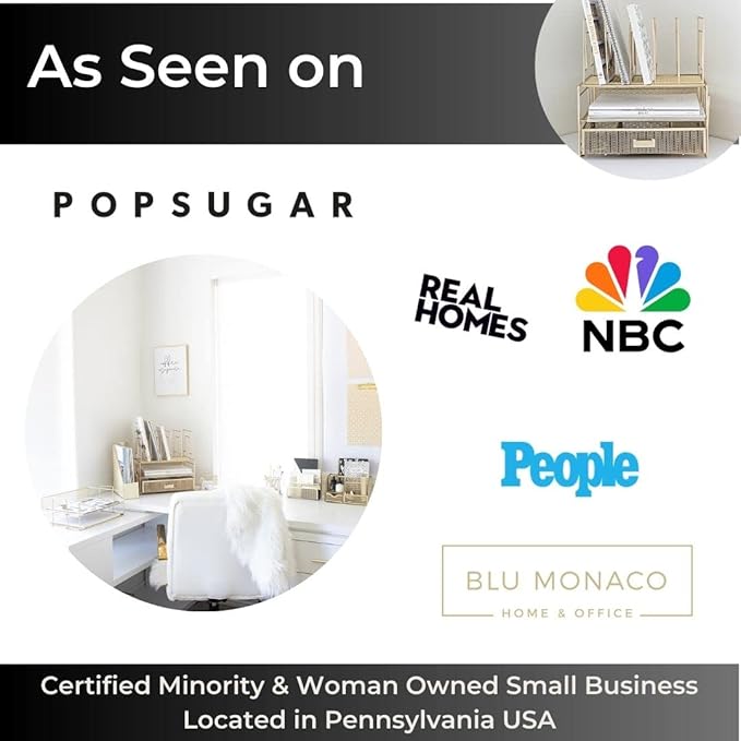 BLU MONACO Gold Desk Accessories and Workspace, Desktop Organizer - Cute File Organizer for Desk and Drawer Storage for Office Supplies, Paper, Device and Folders - File Holder