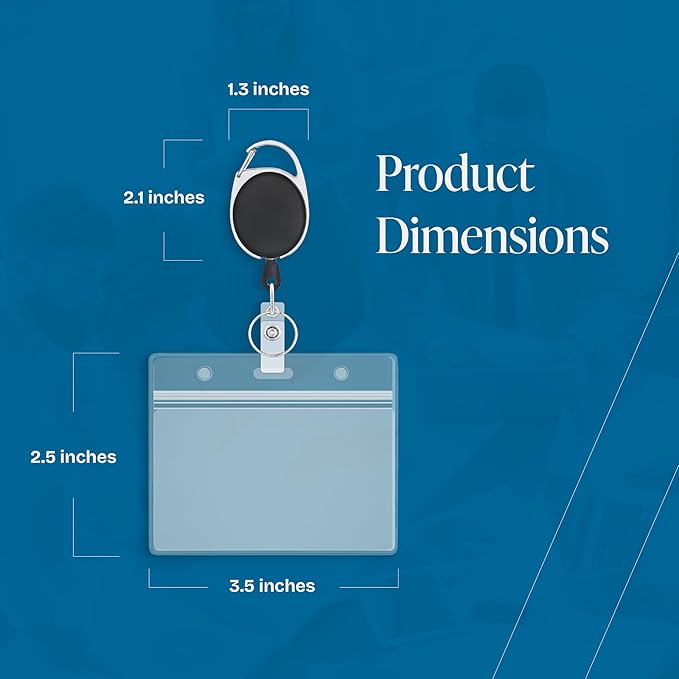 Will Well ID Badge Holders with Clip and Keyring - Horizontal Clear Plastic 2.52" x 3.58" Sleeves Fit Up to 3 Cards - Retractable 24" UHMWPE Fiber Pull Cords for Easy Access - 2-Pack, Black Reels