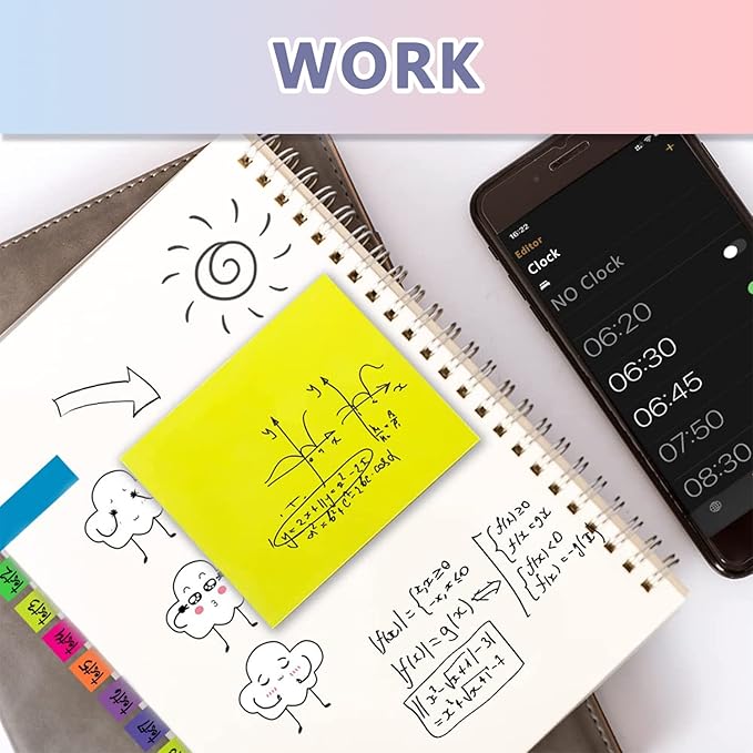 - Sticky & Extra Double-Sided Tape: the stickness on the sticky notes works really well, which uses water-based (not chemical based) adhesive, no worry of peeling off quickly. Removable adhesive for easy re-positioning, you can take them off without ripping the paper. This roll of yellow embroidery double-sided tape is made of double-sided cotton paper and coated with hot-melt pressure-sensitive adhesive. It has good adhesion, tearability and strong stability. You can use it to fix post-it notes