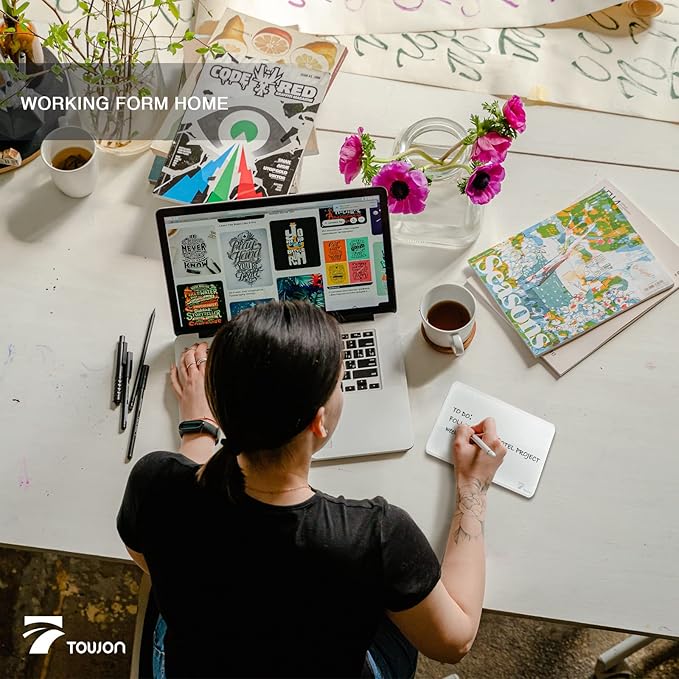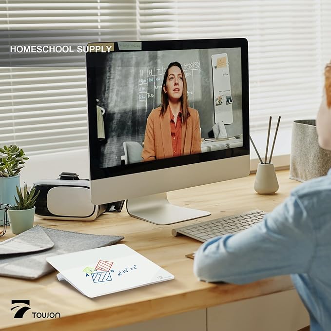 TOWON Small Glass Dry Erase Board, Desk White Board with Standing, Mini Whiteboard Easel Pad Set, Stenography Artifact for Office, Home and School Supplies, 8x6 Inches, White