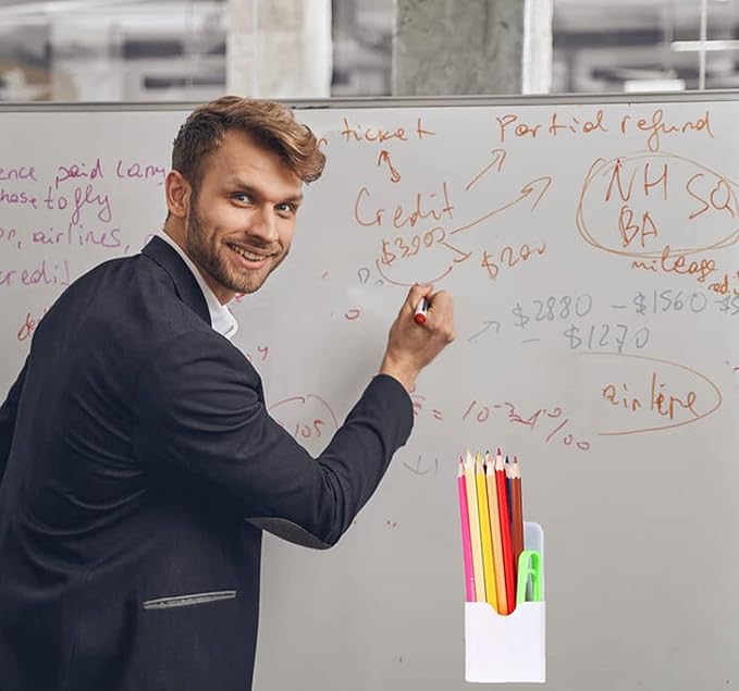 - Powerful Magnet : A strong magnet is fixed into the whole back of this pen holder. It can be put next to your whiteboard and refrigerator or any metallic surface so it can be reached easily when you need to put something down.It will not slide or fall when you put or pick pens.