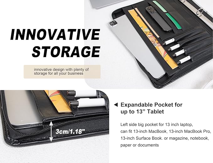 - 🧑💼3 RING BINDER PROFESSIONAL FOLIO --- Portfolio binder folder be used office , conference , career fair , working , study ,business etc .Resumes , documents organizers case . 1" ring binder portfolio could hold about 150-200 sheets A4 papers