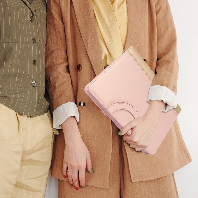 GraduatePro Portfolio Binder Leather Zippered Padfolio Folder Business Case Organizer Bag for Pad Notebook Resume with Clipboard for Women Graduation Gift, Pink