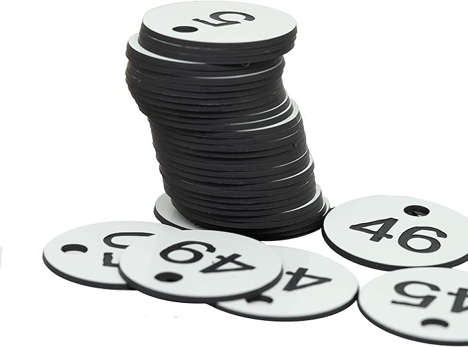 StayMax Plastic ID Number Tags Engraved Tags Key Tags Without Key Rings (1-50, White)