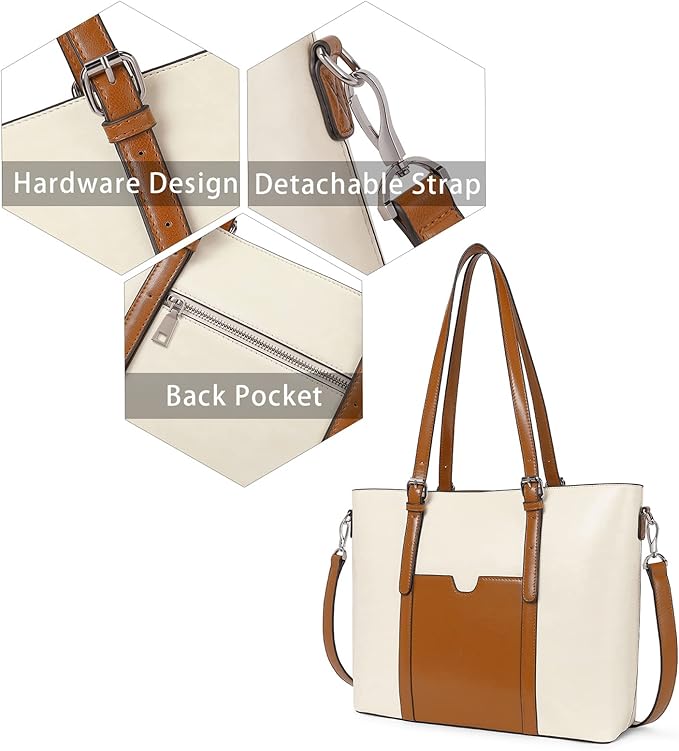 Telena Laptop Tote Bag for Women, 15.6 Inch Shoulder Tote Bag Leather Briefcase for Women, Large Capacity Handbag Bags