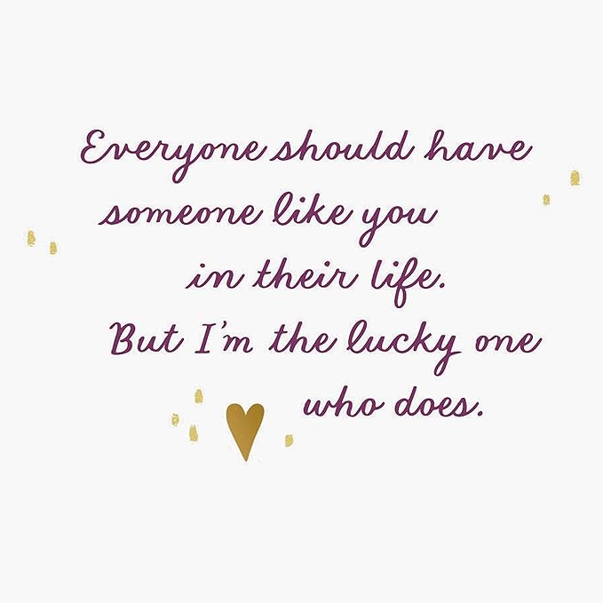 - Cover features a gold foil heart and "Love you" lettering on a starry background. Inside reads: "Everyone should have someone like you in their life. But I'm the lucky one who does."