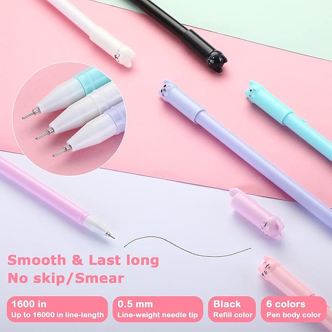 - Cute cat ink pens: different cats colors with different expressions top on pens, lovely and creative; 0.3 mm Pen tips provide you smooth writing effect, supporting your long time use