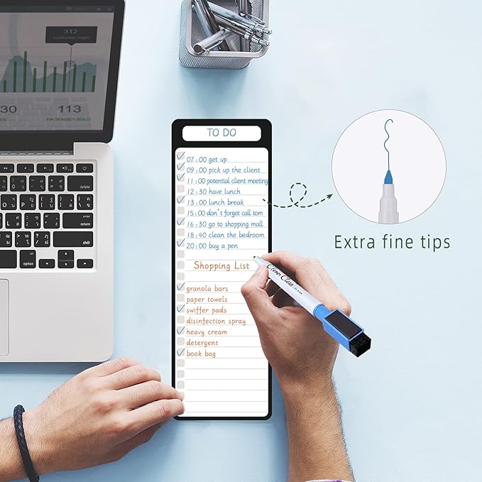 - Markers included – We also provide 6 extra-fine point markers with different colors, so you may use your own color coding. All the markers are magnetic, so you can just hang them on the fridge and no need to worry about losing them.