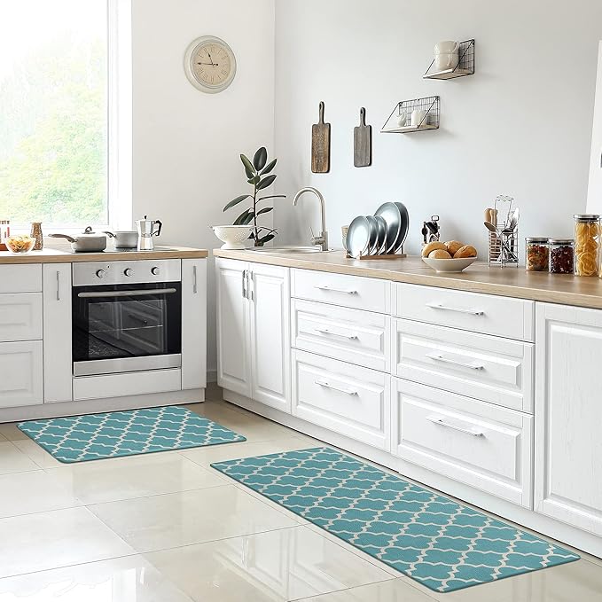 ComfiLife Kitchen Mats for Floor (2 PCs) – Cushioned Anti Fatigue Kitchen Rug for Comfortable Standing – Waterproof, Easy Clean, Non-Slip, Thick Kitchen Mat Set for Home, Office, Sink, Laundry (Teal)