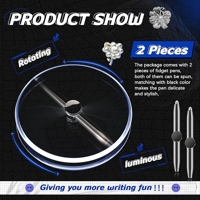 - Wide Applications: the LED light fidget pen can not only be applied as ordinary writing pens, mini flashlight and fun fidget pens, the 3-in-1 functional pens will give you endless fun, besides, they also can be applied as anxiety relief pens to release your working or study pressure, suitable for home, office and school, can be applied as nice gifts to send students, teachers, colleagues and more