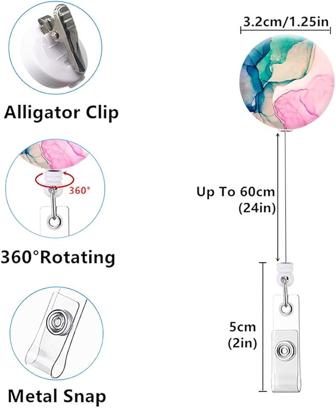 - 【Gift Idea】 You can give them a retractable badge reel as a holiday gift to make them stand out from the crowd.Badge clip is excellent decoration for ID badges or name cards. The unique patterns will make your daily life distinctive.