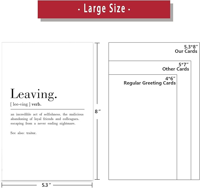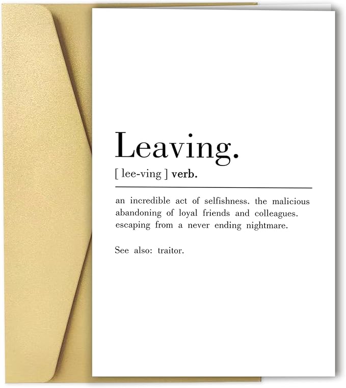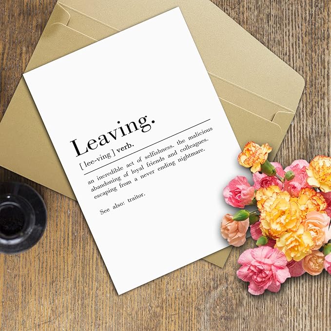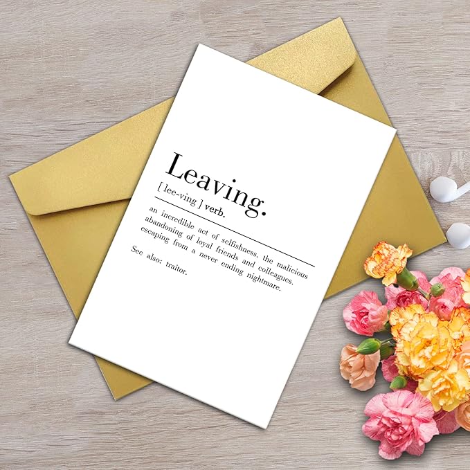 • Funny leaving Definition Greeting Card: this card printed on hilarious words to give your work besite a big smile.
