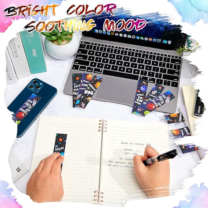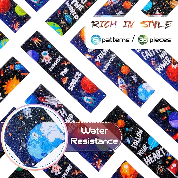 36 Pieces Anxiety Sensory Stickers Cute Fidget Textured Strips Toys Anti Stress Tactile Rough Sensory Calm Textured Strips Adhesives Anxiety Relief for Adults Teens Desk Classroom (Spaceman Style)
