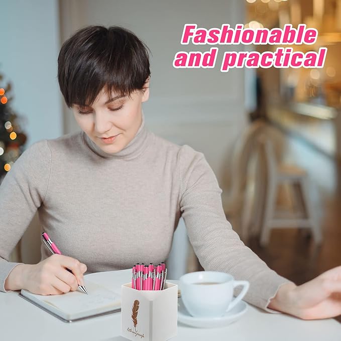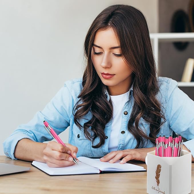 Zonon 38 Pieces Rubberized Ballpoint Pen with Stylus Tip Stylish Metal Pen Capactive Styli with Soft Rubberized Grip, Black Ink for Most Devices(Hot Pink)