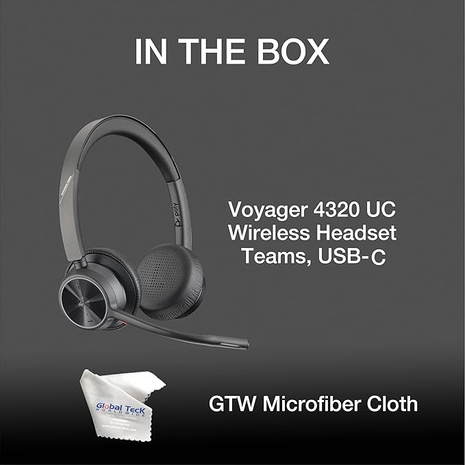 - ✅ GLOBAL TECK BUNDLE: Poly Plantronics Voyager 4320 UC Wireless Bluetooth Duo Headset (USB-C) Teams Version and Includes a Global Teck Microfiber Cloth
