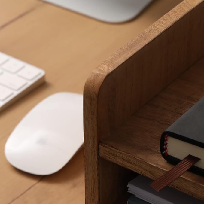 - [SELECTED REAL WOOD] This desk organizer with 3 horizonal trays and 1 vertical upright sections is made of selected solid wood with clear texture and perfect for documents organizer and file folder organizer at any workplace.Cute classical dovetail joint design of this file organizer make itself stable and strong bearing.