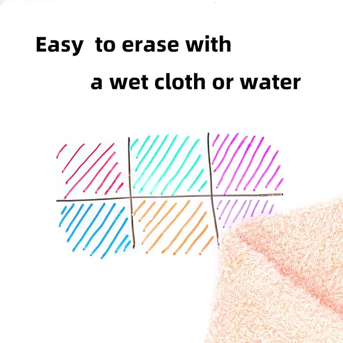 - Assorted Colors,includes:Black, Red, Blue, Sky Blue, Green, Lime, Orange,Yellow, Brown, Pink, Violet and Purple wet erase markers.