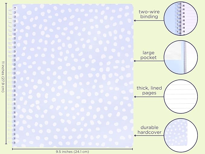 - INTERIOR POCKET: Features a durable hardcover with a classic polka dot design and a double sided storage pocket to keep loose notes organized