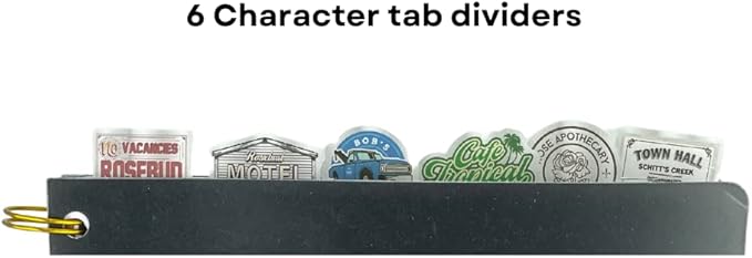 - VINYL COVER WITH 6 SEPARATORS - The protective vinyl cover is easy to wipe clean, and the themed separators stick up from the top for easy flipping. Each section divider is colorfully illustrated with sayings and icons from the Schitt’s Creek TV series.