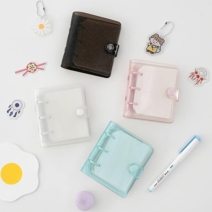 3 Ring Glitter Binder Cover Clear PVC Notebook Cover Protector Loose Leaf Folder Binder Mini Transparent Binder Pockets with Paper Black