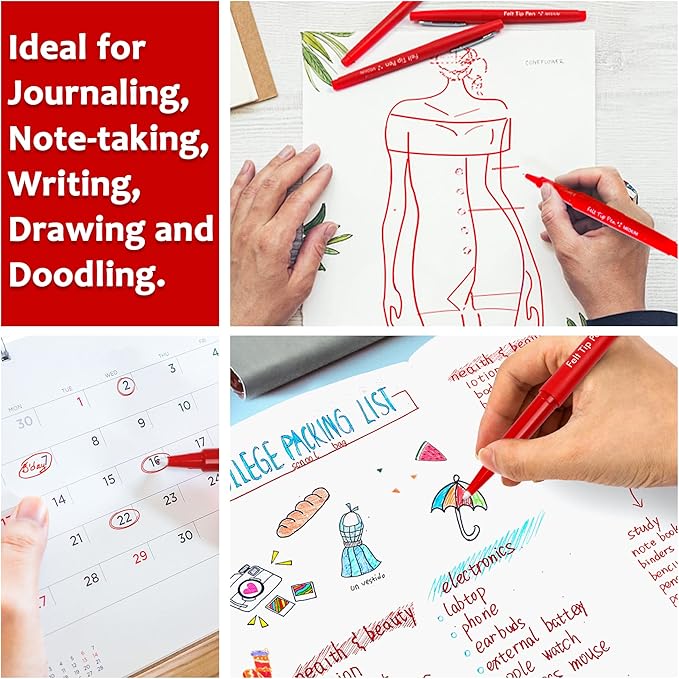 - RED FELT TIP PENS: Lelix felt tip pens set has 30 red pens. Versatile felt tip and rich ink can create eye-catching, vibrant impression