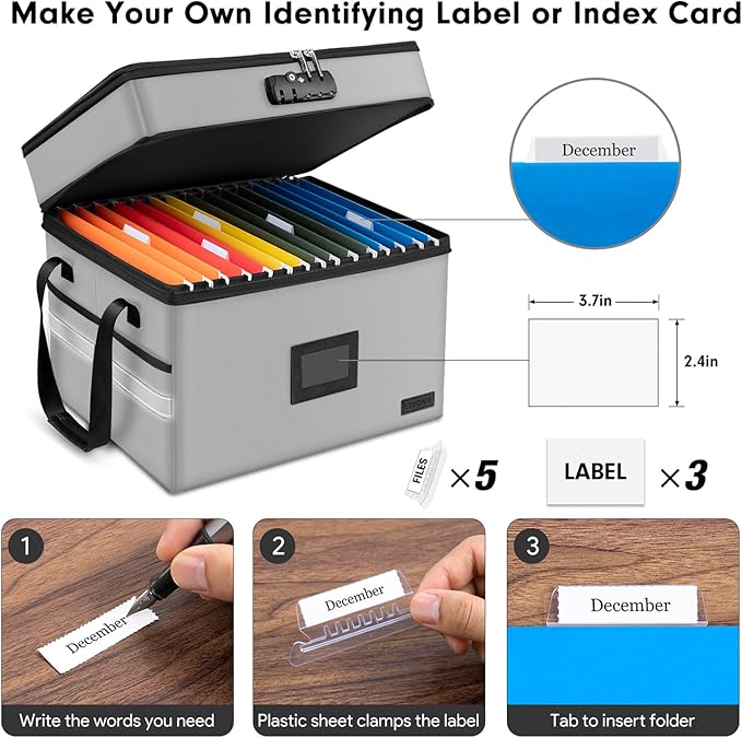 - [Considerate Design]- The side reflective strip of the storage box allows you to find it quickly even in the dark evening. Also, there are 5 clear plastic tabs, 5 replaceable white inserts and 3 labels papers helping you to organize your things well to make sure finding them quickly