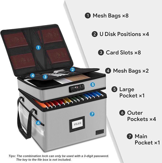 - [Anti-theft Lock Protection]- Coded lock of zipper in the storage box can protect your important file in office or your home, especially for those who have kids and pets. Both 2 layers' pockets can be locked with the password lock and zippers. So both the 2 layers can be use for your valuables like contracts, cards, certificates, passport and so on
