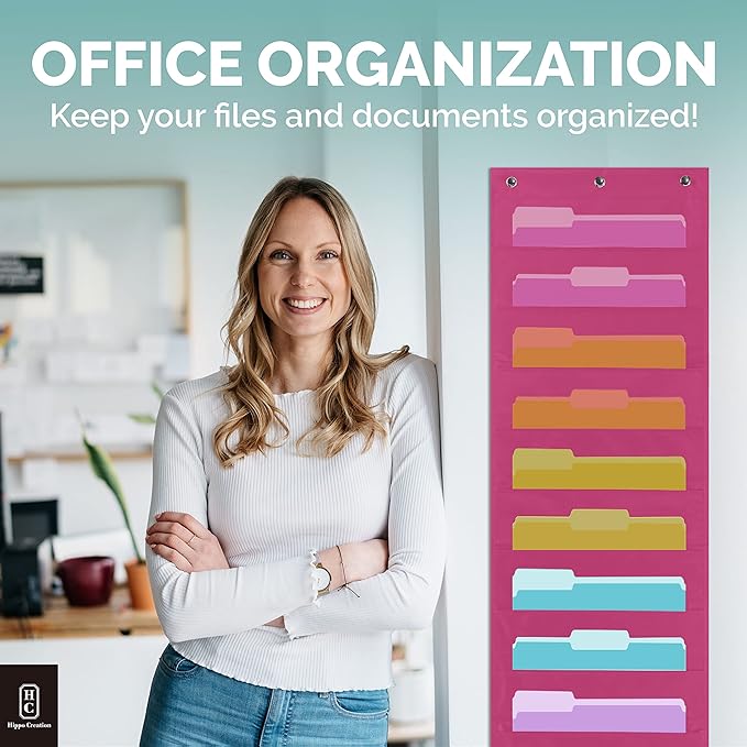 - Wall File Organizer: Our hanging file organizer has been thoughtfully designed for quick & easy access. Unlike other pocket charts, ours is made of thick, sturdy material (not flimsy) that stays flat against a wall or door.