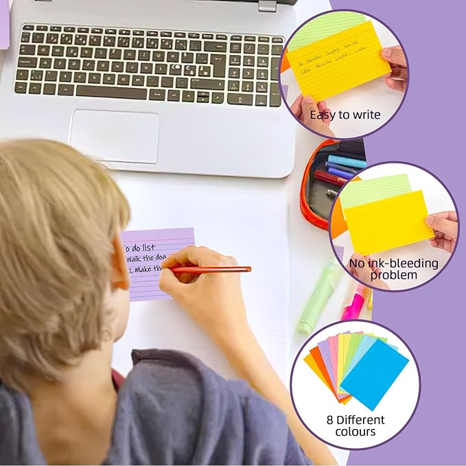 • Color-Coded Organization – With 8 vibrant colors, these note cards allow for easy categorization by subject, topic, or priority, making study sessions and note-taking more structured and efficient