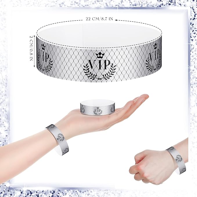 - Proper Size for Most People: these VIP bracelets are about 9.84 inches long and 1.2 inches wide, suitable for both men and women; There is non stick glue on the wristbands, and the glue length is 3 cm/ 1.18 inches, so you can easily adjust the size to find the right fit for your wrist