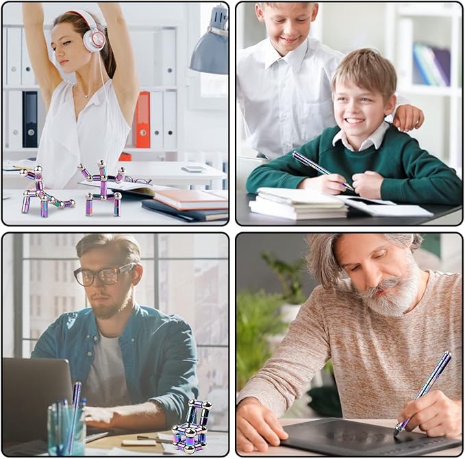 - 【Multifunction Fidget Magetic Writing Pen】This magnet pen is not just a pen, also be a finger fidget toy. Not only can be used as a writing tool, but also can be used as compass for geometry tools.It can be rotated and transformed into a variety of creative, free combination, multiple and diverse plays.
