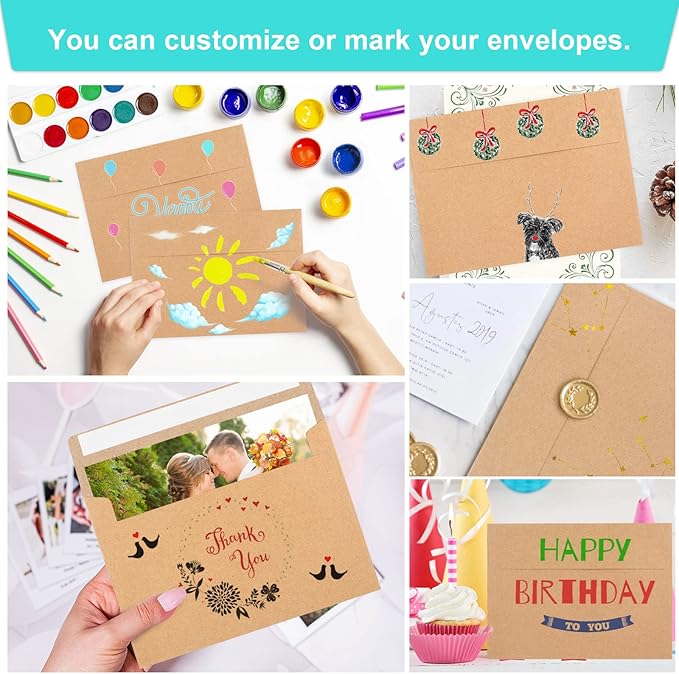 - Privacy Protection: These invitation envelopes for 5x7 cards are thick, sturdy and not see- through, keeping your contents private and refusing to leak. This 5x7 envelope is very suitable for 5x7 cards/photos. These envelopes are also very suitable for direct mail, letters, postcards, weddings, birthdays, baby showers, graduations, holidays, handmade cards, business.