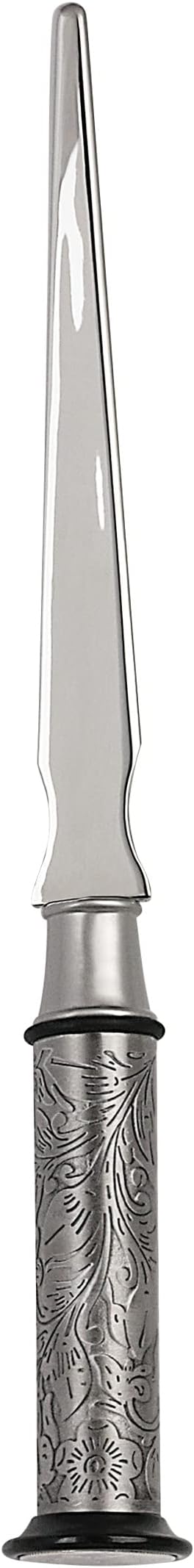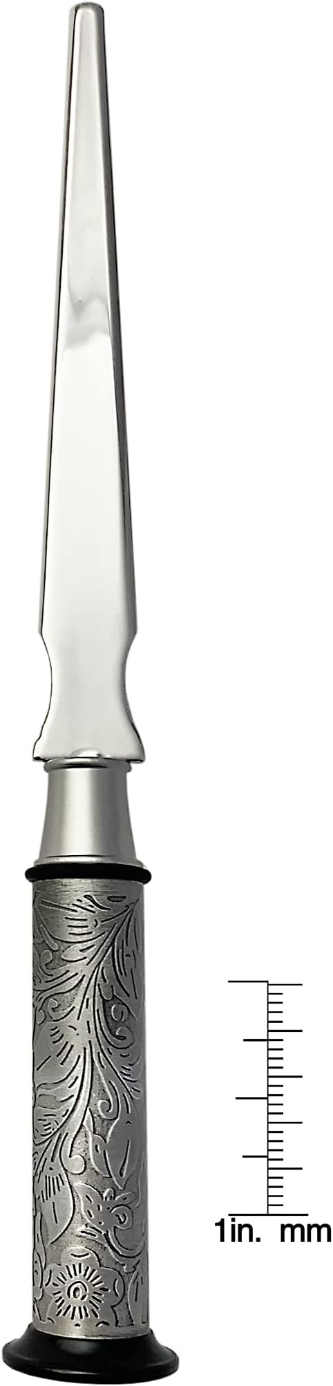- Style and design-Historical and patriotic, the Mercury Dime is securely set in the handle of a letter opener with an antique design. The brass handle is silvertone with an antiqued scroll work design. The letter opener measures approximately 7 inches. A beautiful accessory for your desk.