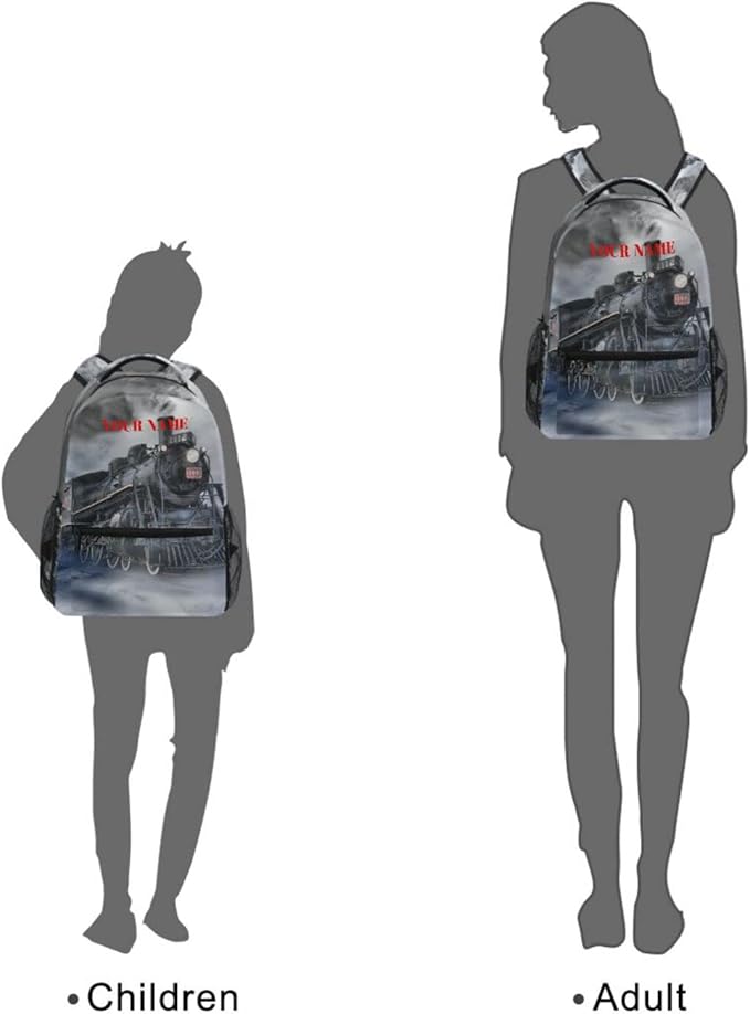 AUUXVA Custom School Backpack for Boys Kids with Name/Text Personalized Bookbag Add Your Name Customized Backpack Vintage Train School Bag Laptop Backpack Travel Camping Daypack