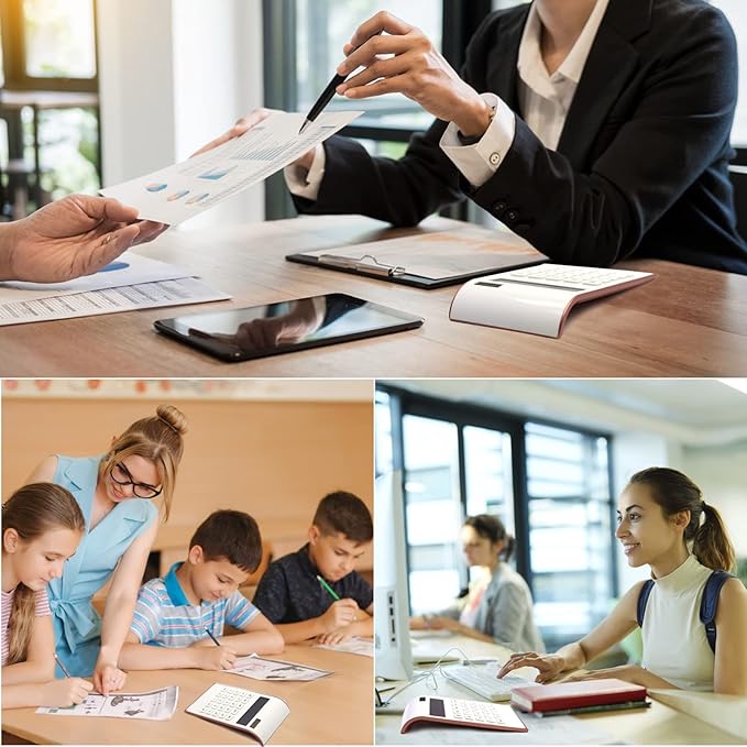 - Quality & Appearance- Calculator large display for women is made of durable ABS to ensure normal daily use; The Elegant and slim design and reasonable button layout make it beautiful and practical, perfect size, fits right on the desk and does all you need in a tight spot.