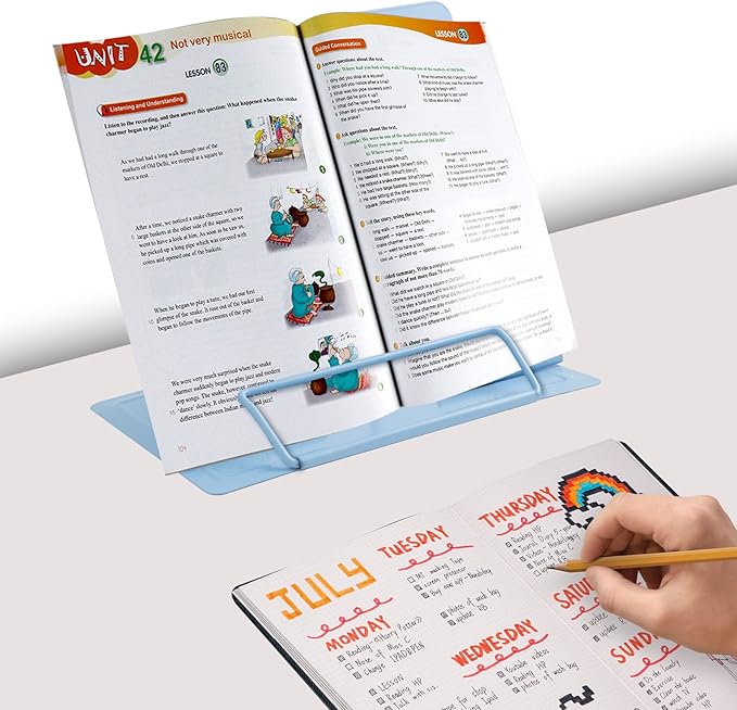 - 【Book Holder for Reading】The book holder is designed for keeping your hands-free when we are reading cookbook magazine painting papers documents text books sheet music catalogs notetablet or iPad. Support thicker books in school library dorm office or any other desktop.