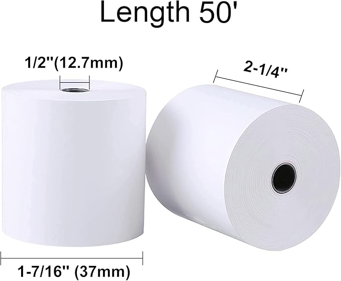 • 2 1/4" x 50' Thermal Cash Register Receipt Paper