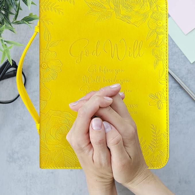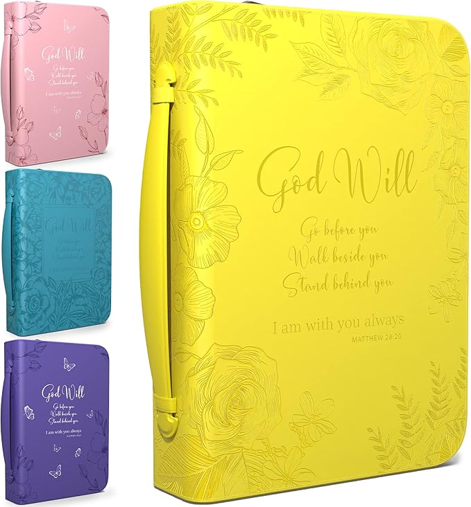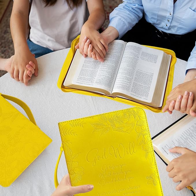 - BRIEFCASE LARGE & MEDIUM SIZES: Our Yellow briefcase for women measures itself 11 x 7,6 x 2.3 inches and fits book up to 7 x 10.1 x 1.9 inches; The Bible carrying case has loop inside for a pen so you can take notes as you read the Scripture