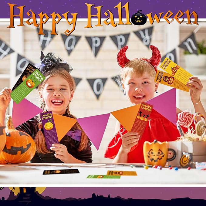Gueevin 120 Pieces Halloween Bookmarks Pumpkin Bible Verses Bookmarks Christian Bookmarks Religious Book Markers for Women Girl Book Lovers Church Baptism Christian Halloween Gifts