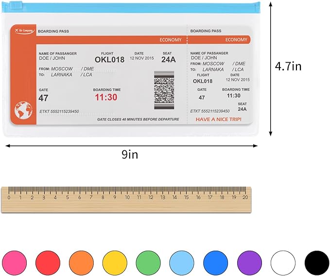 - PRODUCT SIZE: Each plastic zip envelope is 9 inches/23 cm long, 4.7 inches/12 cm wide, can accommodate A6 size documents